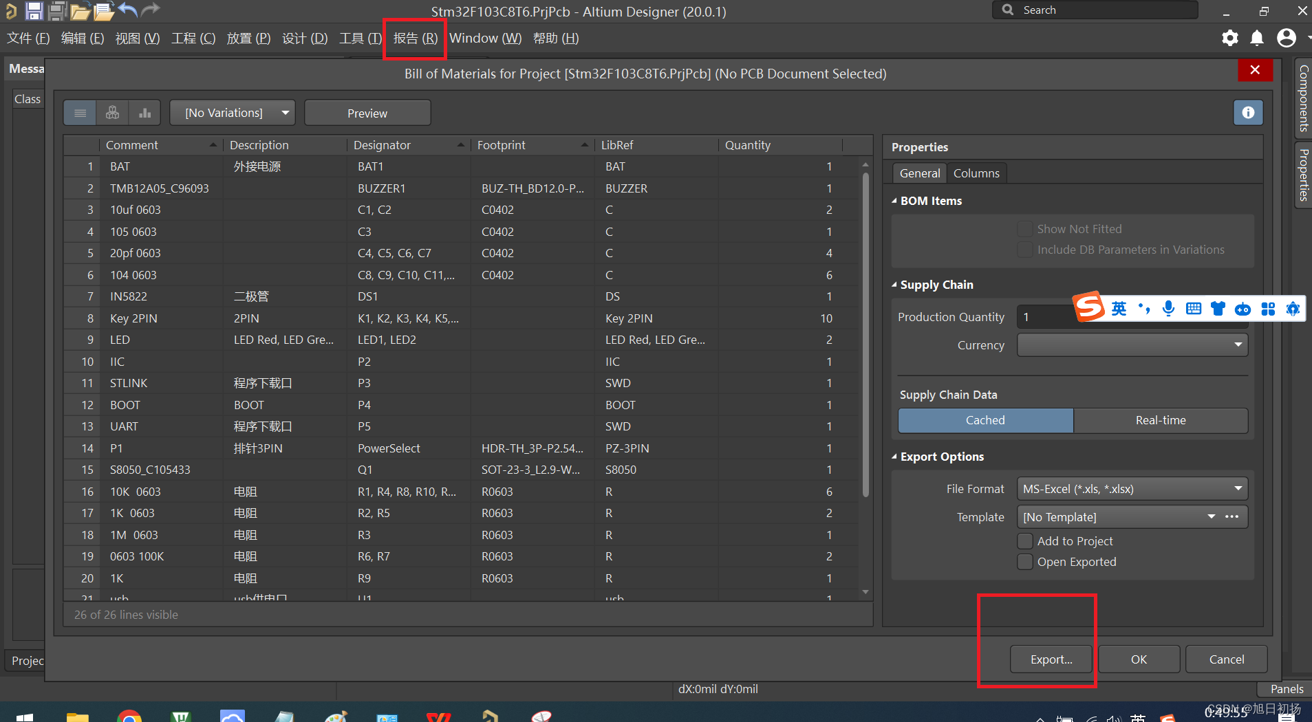 5、编译原理图后 出现原理图中所使用的元器件 或错误信息