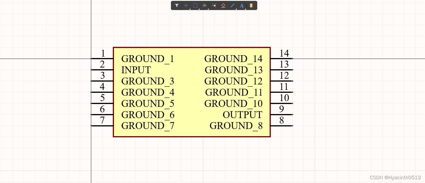 这个就是我在新建的xxx.SchLib文件中画的一个滤波器的原理图,绘制过程中是不用考虑元器件的电气性能的,只要能展现出各个引脚的功能即可。