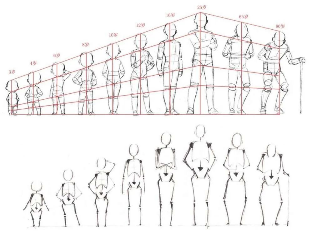 随着年龄的增长,胯部底部会提高,上身和下身也会相对于增长。