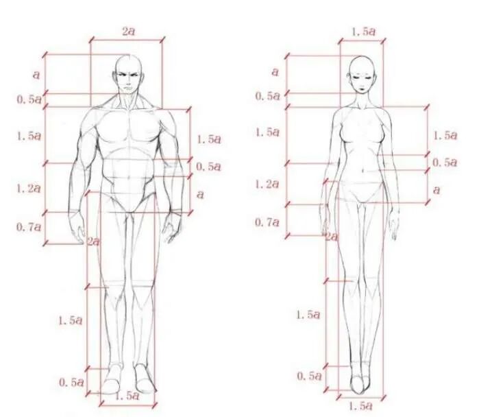 在前文所提到的骨骼比例关系当中,其实男性和女性也是有差别的。