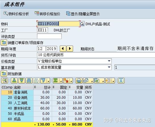 今天再研究上层半成品的工单差异分配到成本组件的逻辑,发现并不满足昨天(第二次更新)的逻辑,而是材料成本比工单里的实际/目标成本差异降低了,而工费成本(作业类型相关的成本)则增加了,其实这是个差异上卷的逻辑,从道理上讲是对的,即SAP认为工单差异里也包括了下层的纯材料成本和工费成本,因此从下层半成品投入的物料其对应的实际/目标成本差异应减少,而工费应增加,不过没研究出实际成本/目标成本差异中材料成本差异减少和工费成本增加的具体逻辑。