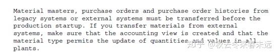 另外,如果在执行CKMSTAR后再开始创建物料以及其他操作,那么CKMSTART的意义就不存在了,因为这个时候系统里没有物料、也不可能有历史采购订单,只是执行一步操作,并没有实际的影响了。我们想想也是如此,物料账激活后,总归要进行正常的业务操作,那么我们就在物料账激活后,把所有的期初切换操作当成正常的业务操作就可以了,何必先要导一部分数据(按照SAP note说法,是先导入物料和采购订单、采购订单历史),再激活物料账呢?