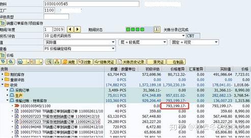 3、2019年1月份物料结账后,差异分摊正常,是因为在1月份大部分的物料都发生了物料价值的修改(MR22),系统也认为发生了物料帐过账,因此1月份结账正常;