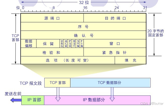 - 数据偏移/首部长度: 占4位,用于指示TCP报文段的首部长度,单位为32位字(4字节)。由于TCP报文段的首部可能包含可选字段,因此其长度是可变的,最大长度为60字节。