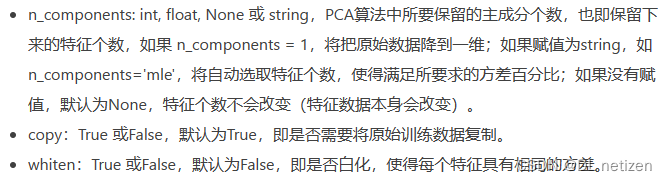 sklearn.decomposition.PCA(n_components=None, copy=True, whiten=False)