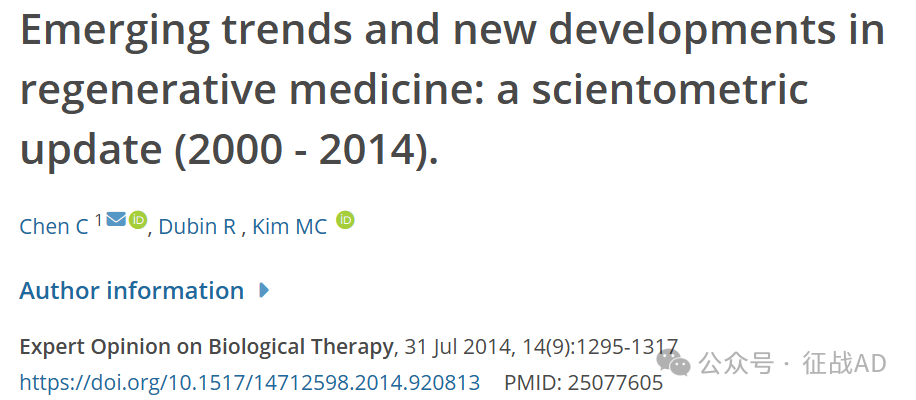 文献计量分析顶咖Chaomei Chen 等研究学者在期刊 Expert Opinion on Biological Therapy 上发表了题为