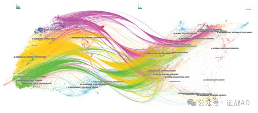 图13. 2000-2011 年间发表的 3875 篇文章的双图叠加可视化