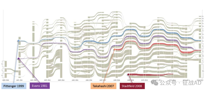图8. 2000-2014 年的时间线可视化,包括 2012 年以后的新进展