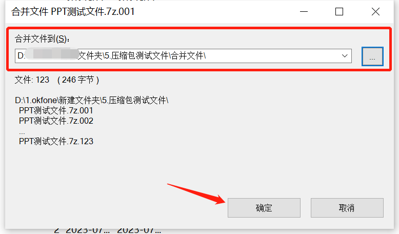 选择合并后压缩包的保存路径,点击【确定】就可以开始合并分卷压缩包了,然后我们再解压文件就是整个文件夹了。