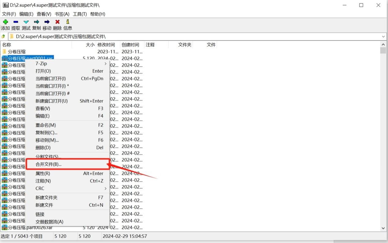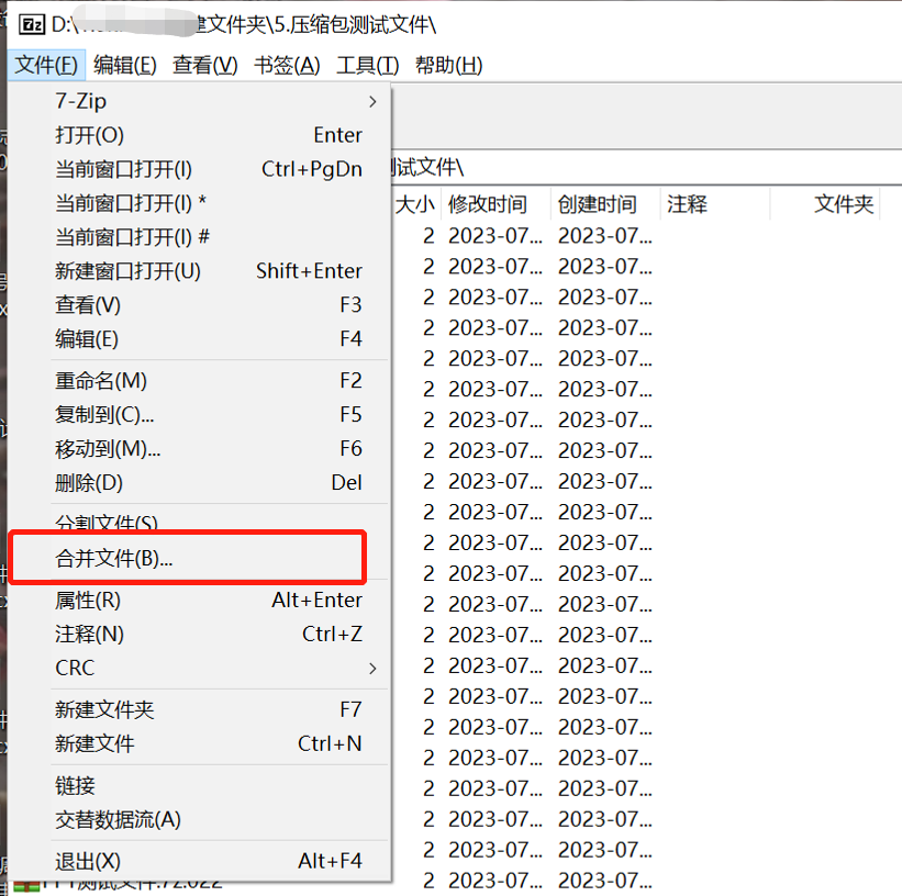 注意:分卷压缩出来的压缩包,不要修改其中任一个压缩包的名称及路径,否则会导致解压失败。如果在分卷压缩的时候设置了密码,在解压的时候,我们也需要输入密码才能够解压,如果忘记了密码,我们需要先将分卷压缩包合并成一个压缩包,然后早找回密码。想要合并压缩包,我们可以使用7-zip中的合并功能,右键选择第一个压缩包,选择【合并文件】即可