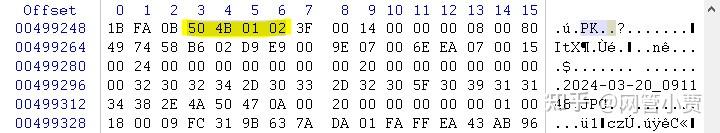 我口送法号,念念有词,结果研究了半天,毫无起色。正在一筹莫展之际,我突然灵光乍现,想到了一种可能的情况。会不会是……?于是我用立马用16进制文件编辑器打开这个压缩文件,用眼睛扫了扫,果然验证了我的猜测!哈哈,我紧锁的双眉舒展了开来,原来如此……
