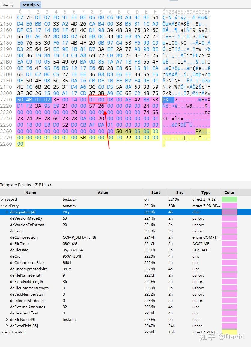 光这么说,各位肯定得糊涂,还是画图为妙。以下就是一个普通 ZIP 文件里面的样子,应该可以看到一些规律吧。
