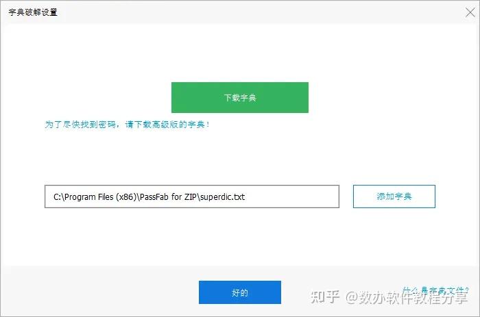 3.字典激活成功教程:如果你有记录密码的文档,可以将其存储为”.txt“文档,然后选择“设置”点击“添加字典”,该方式可以快速的在内置的字典或你添加的字典中查找密码。