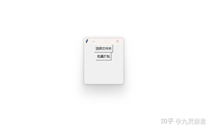 root = tk.Tk() root.title(”文件批量打包工具“) root.geometry(’150x150‘) root.resizable(0,0) folder_entry = tk.StringVar() folder_button = tk.Button(root, text=”选择文件夹“, command=open_folder) folder_button.pack() search_button = tk.Button(root, text=”批量打包“, command=batch_zip_all) search_button.pack() root.mainloop()