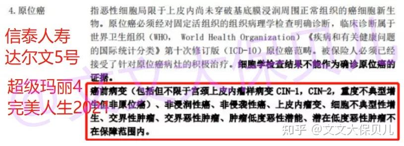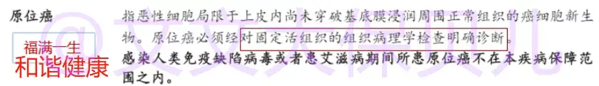 但是也有个别保险公司的个别重疾险产品,会在原位癌中点名把CIN3剔除出去。也就是说,CIN3在这些重疾险产品中是不可以按照轻症中的原位癌去索赔的。比如百年人寿的康佳倍重大疾病保险。相比之下,也有保险公司点名CIN3属于原位癌的赔付范围,比如复星联合健康的福特加重大疾病保险——是不是很有趣?