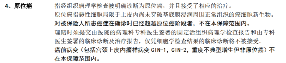 因此,CIN3在临床上就是原位癌,至于能否可以按照原位癌去赔付,需要看我们所投保的重疾险产品的条款约定。也可以这样去理解:女性朋友在选择重疾险产品时,需要特别关注条款中原位癌的具体约定了。