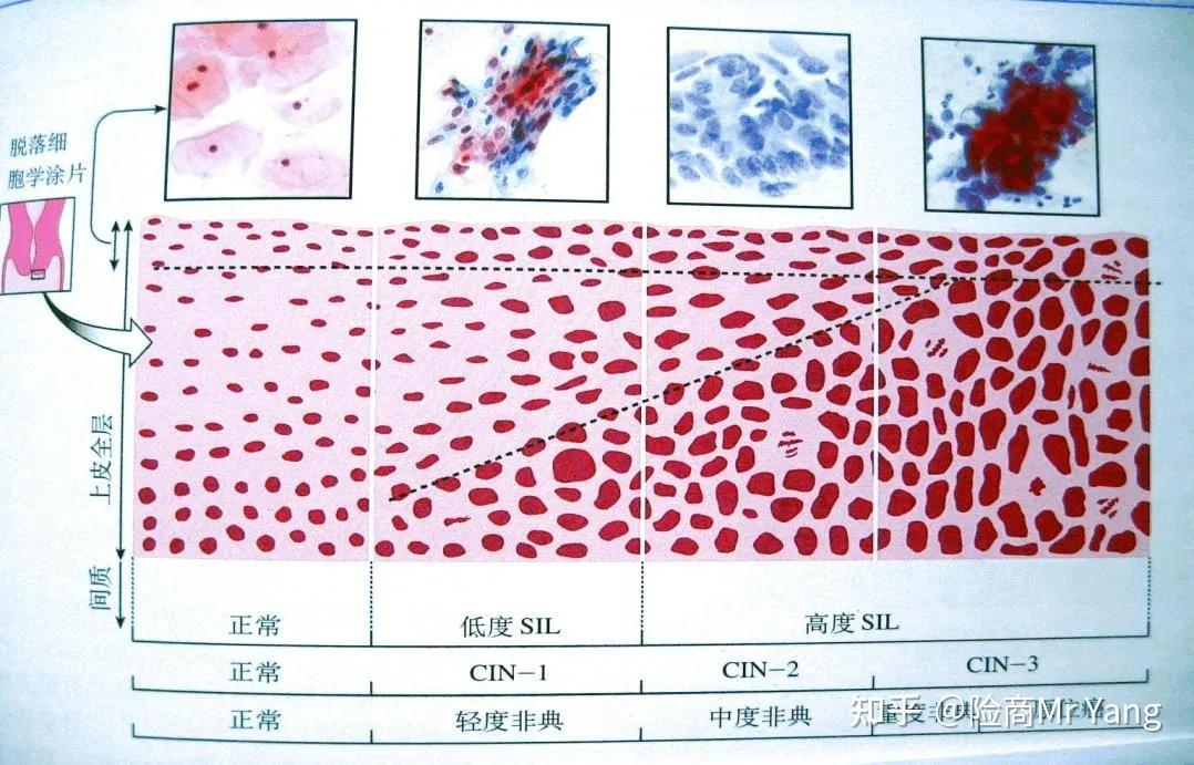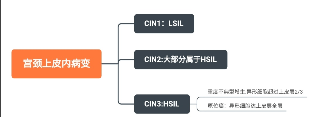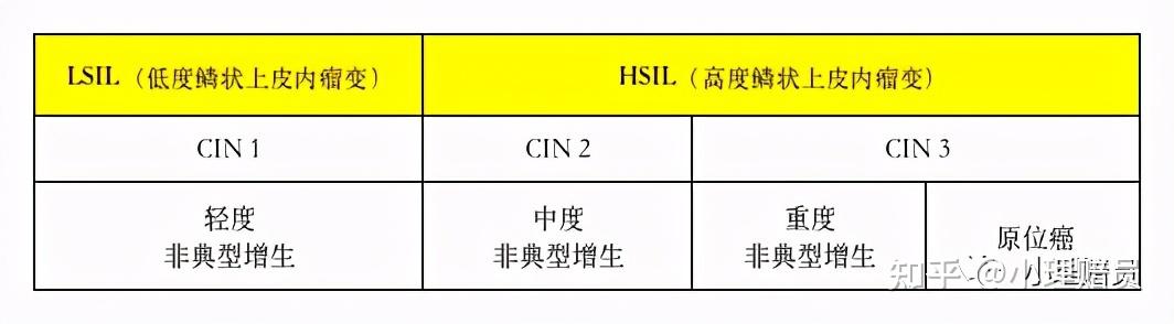 现在医学院校广泛使用的人卫版第九版教材,无论是《病理学》还是《妇产科学》都把CIN III定义为包括了重度非典型增生和原位癌。2014年WHO肿瘤分类中使用两级分类法,将宫颈鳞状上皮内病变分为低级别鳞状上皮内病变(LSIL)和高级别鳞状上皮内病变(HSIL),LSIL包含了CIN I 和湿疣病变,HSIL则包含CIN II 和CIN III。