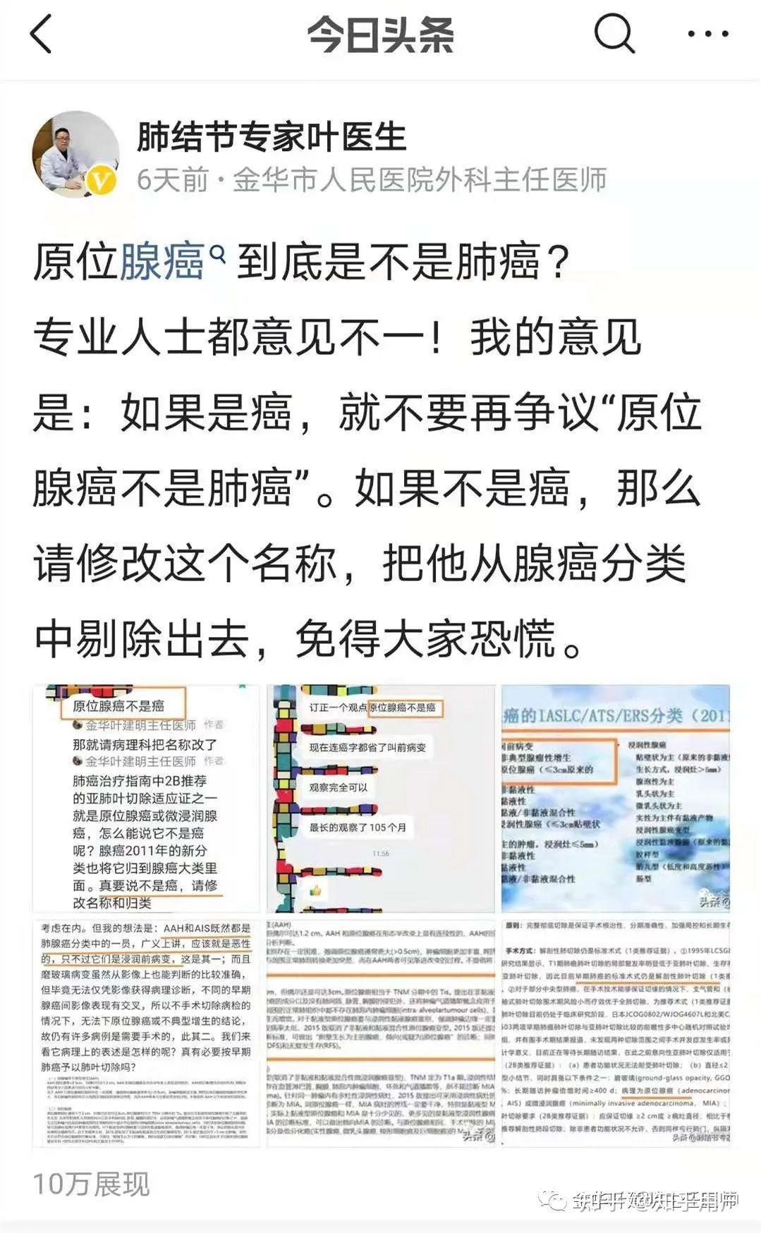 所以我刚刚前几天在今日头条上还就原位腺癌的事进行了呼吁: