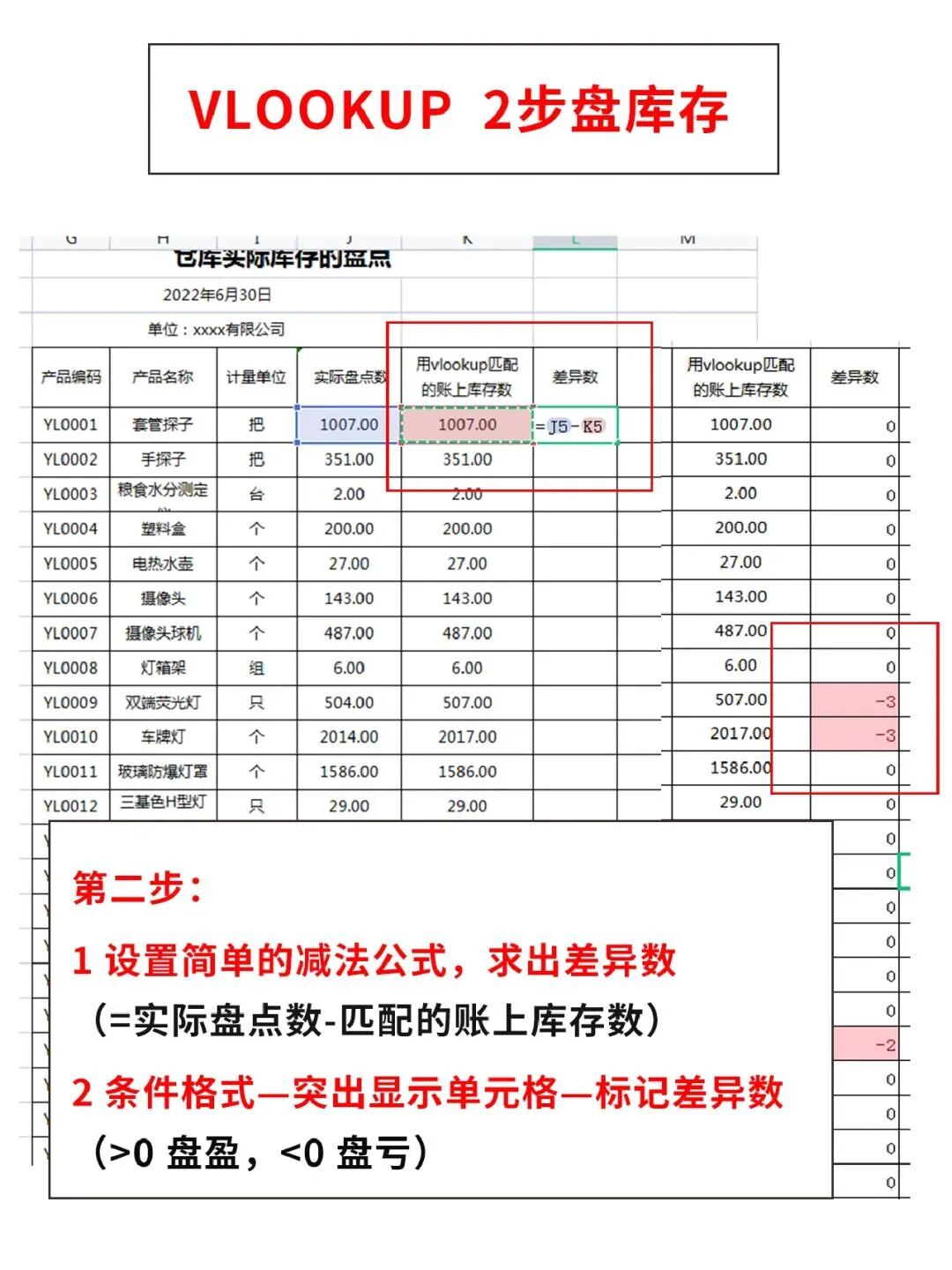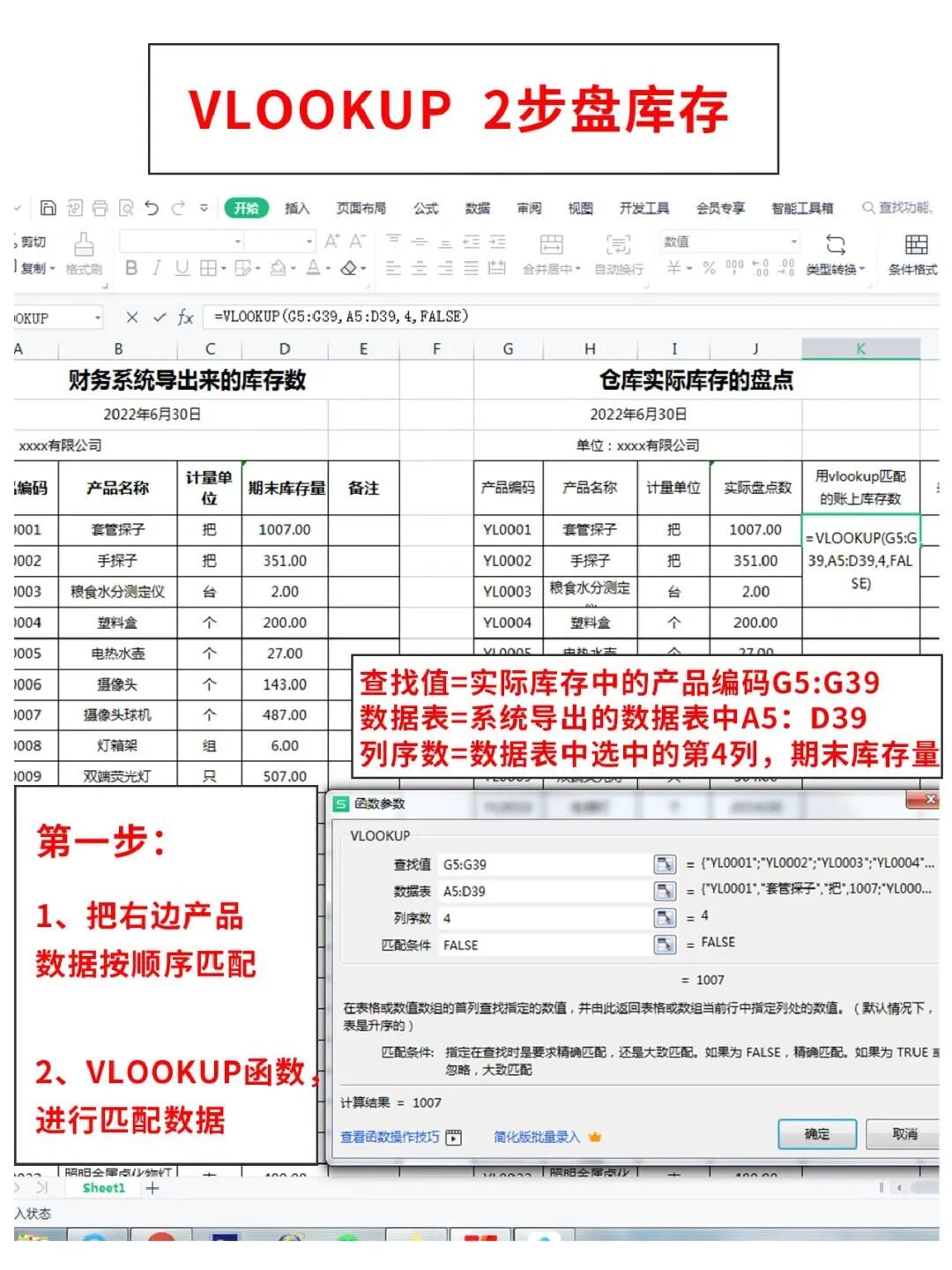 还不知道如何用vlookup函数盘库存?这个方法节省时间且函数的准确性高!只需要2步(以下是函数实用步骤)👇
