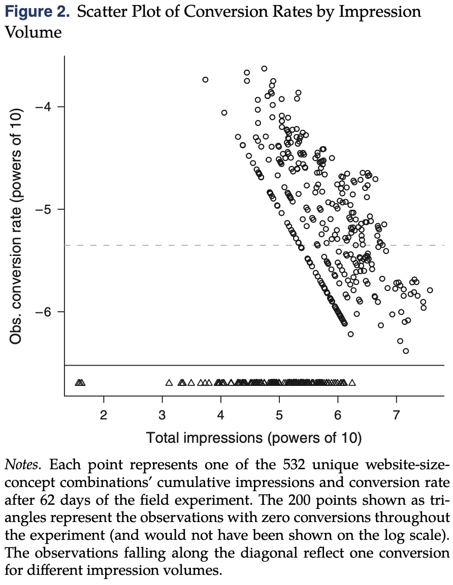 - 与一家美国金融服务公司合作进行实地实验,实验为期62天,涉及多种广告概念、尺寸和媒体投放。实验产生了532个单位的观测数据,包括广告展示次数、点击次数和转化次数等信息。