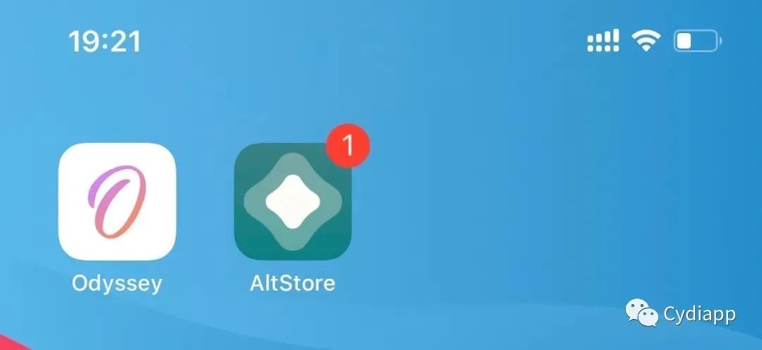 1:安装好AltStore后,你需要通过任意一种办法,在手机上下载,传给手机Odyssey.ipa文件,然后选择其他应用打开,选择AltStore打开。