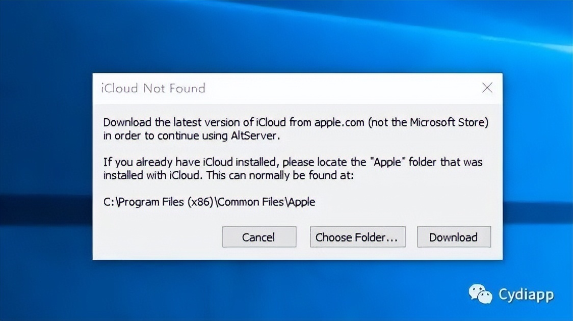 5:选择iClould安装路径,默认路径如下,点Choose Folder(选择文件夹)