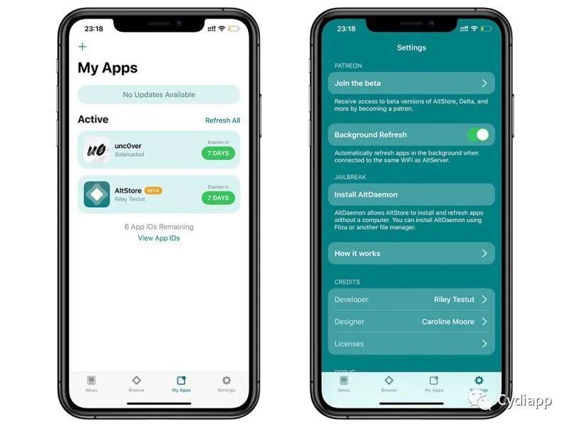 安装后用此AltServer安装的App就支持越狱环境下自签功能