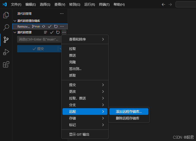 2.1.2 VS Code 添加远程仓库(输入远程仓库地址和名称)