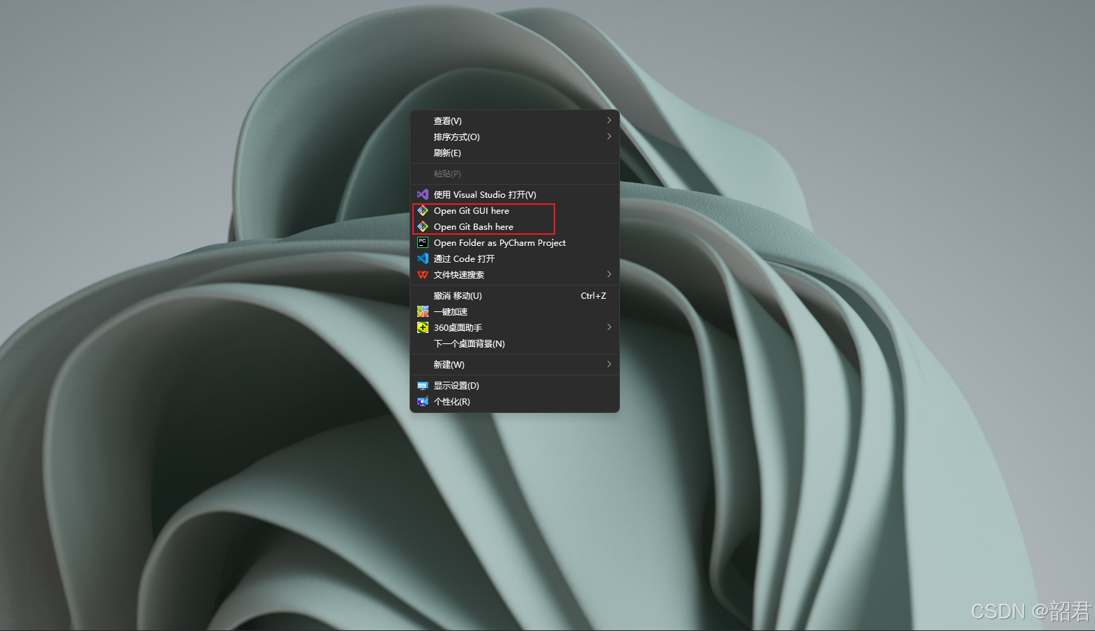 1.2.15 桌面鼠标右击,出现Git GUI here 和 Git Bash here,即安装成功