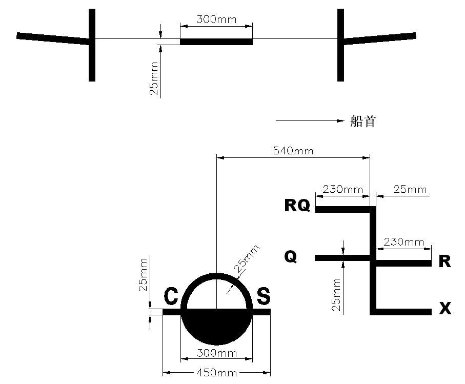 在载重线圆环两侧加绘字母CS;当不由中国船级社勘划载重线时,则用ZC代替CS。字母高115mm,宽75mm。