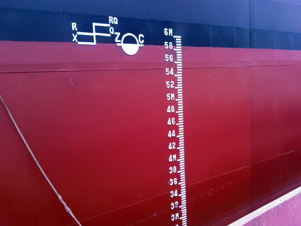 标“X”的线段表示夏季载重线,其上边缘通过圆环中心。
