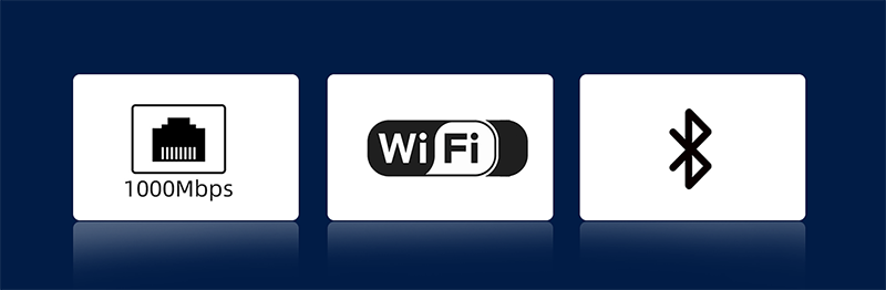 板载1000Mbps RJ45以太网、2.4GHz/5GHz双频WiFi、蓝牙4.2;强大的网络通讯能力可让数据传输更稳定,速度更快。