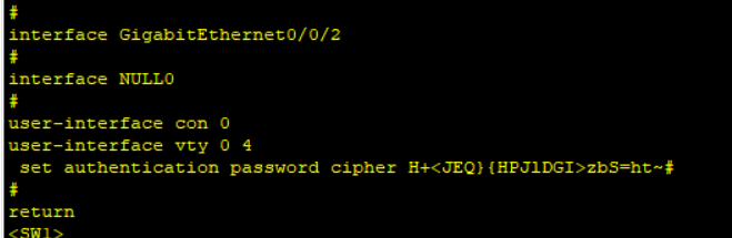 回到交换机2,查看当前数据,发现确实被更改了登录密码以及密码格式。