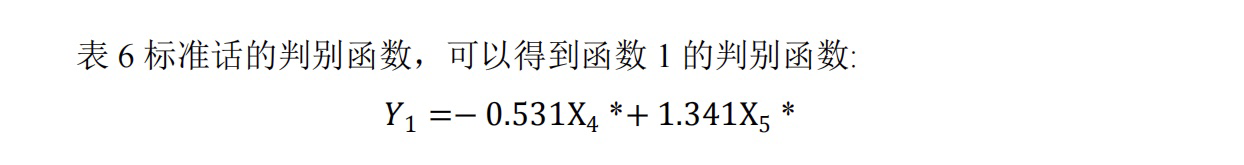 表6标准话的判别函数,可以得到函数1的判别函数: