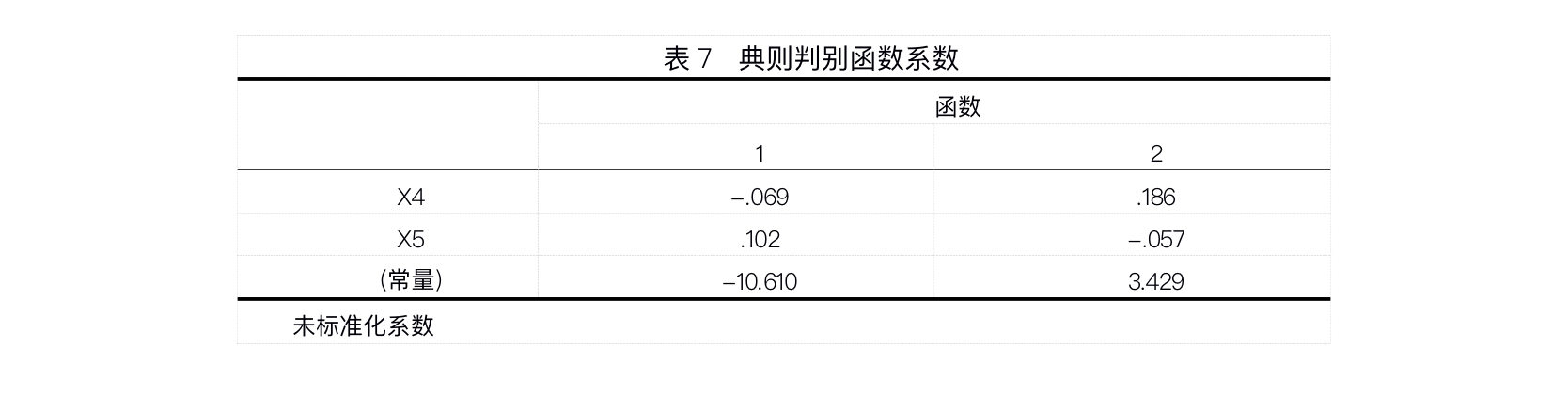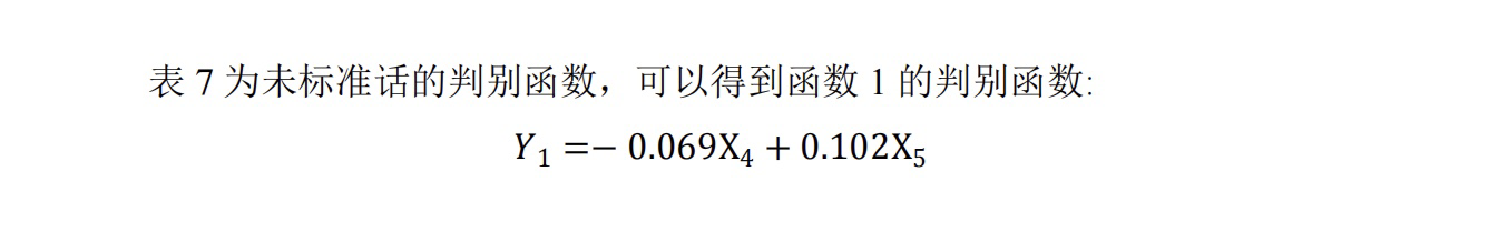 表7为未标准话的判别函数,可以得到函数1的判别函数:
