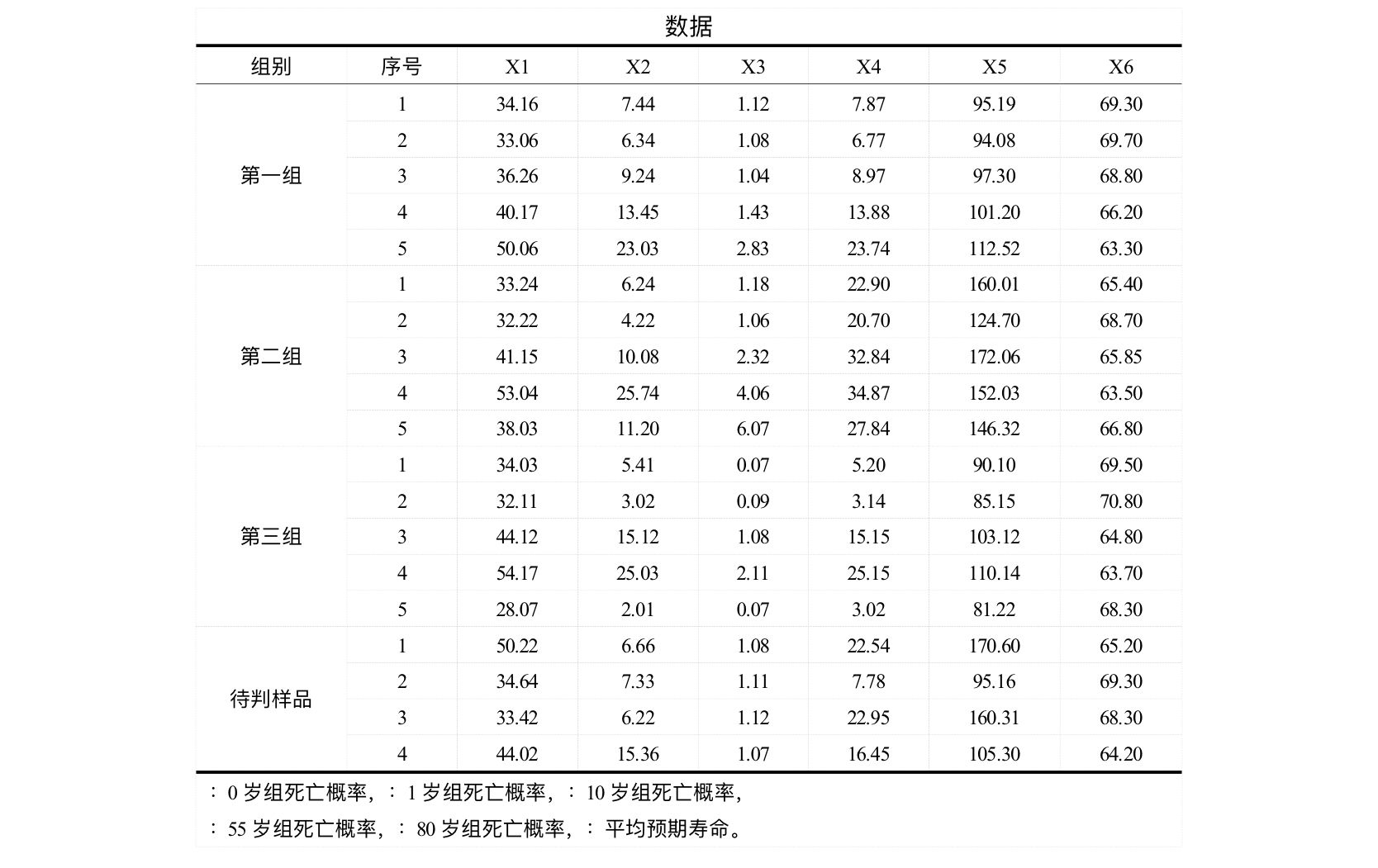 题目:为研究某地区人口死亡状况,已按某种方法将15个已知样本分为3类,指标指标及原始数据如下表,试建立判别函数并判断另外4个判别样品属于哪一类。