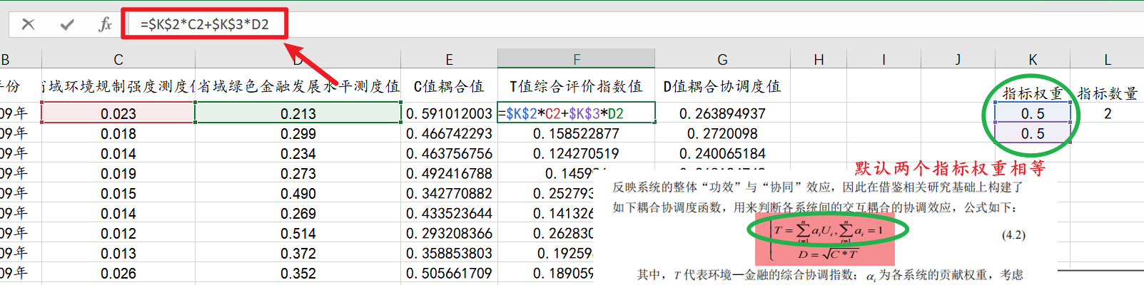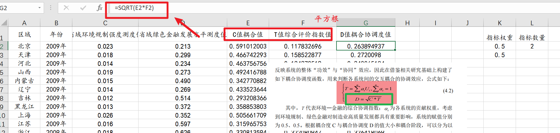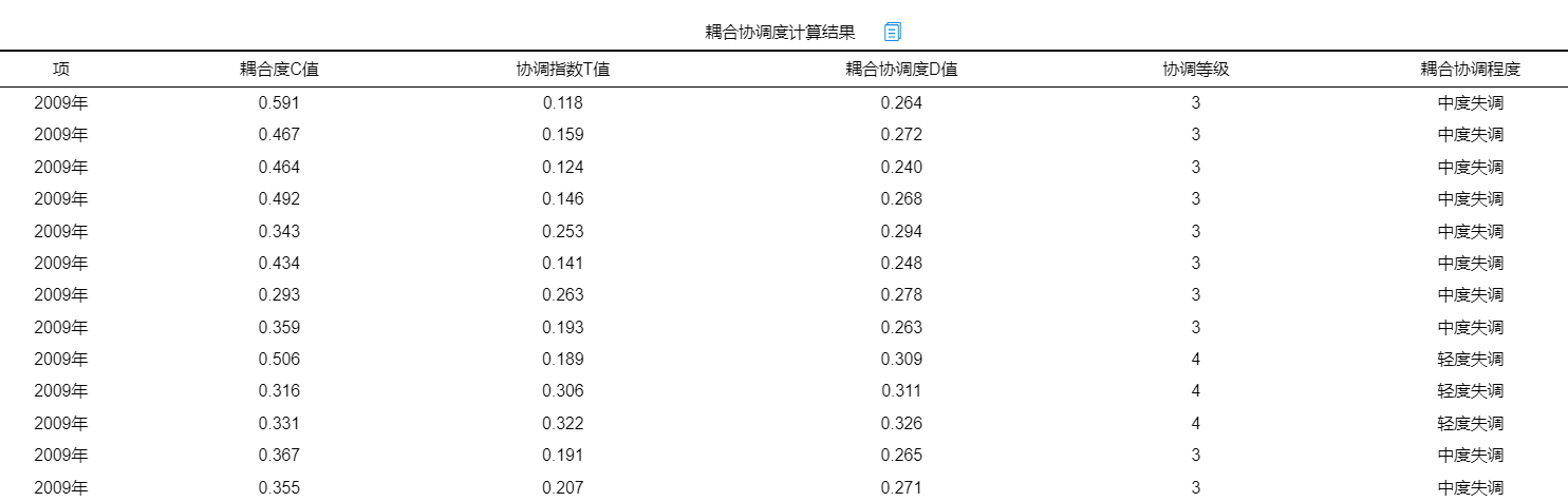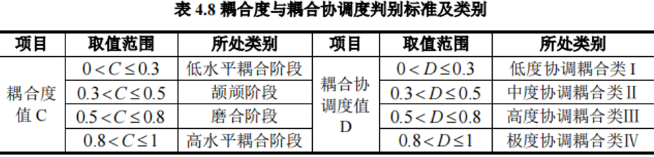 完成耦合度 C 值和协调度 T 值计算后,可计算耦合协调度 D 值;
