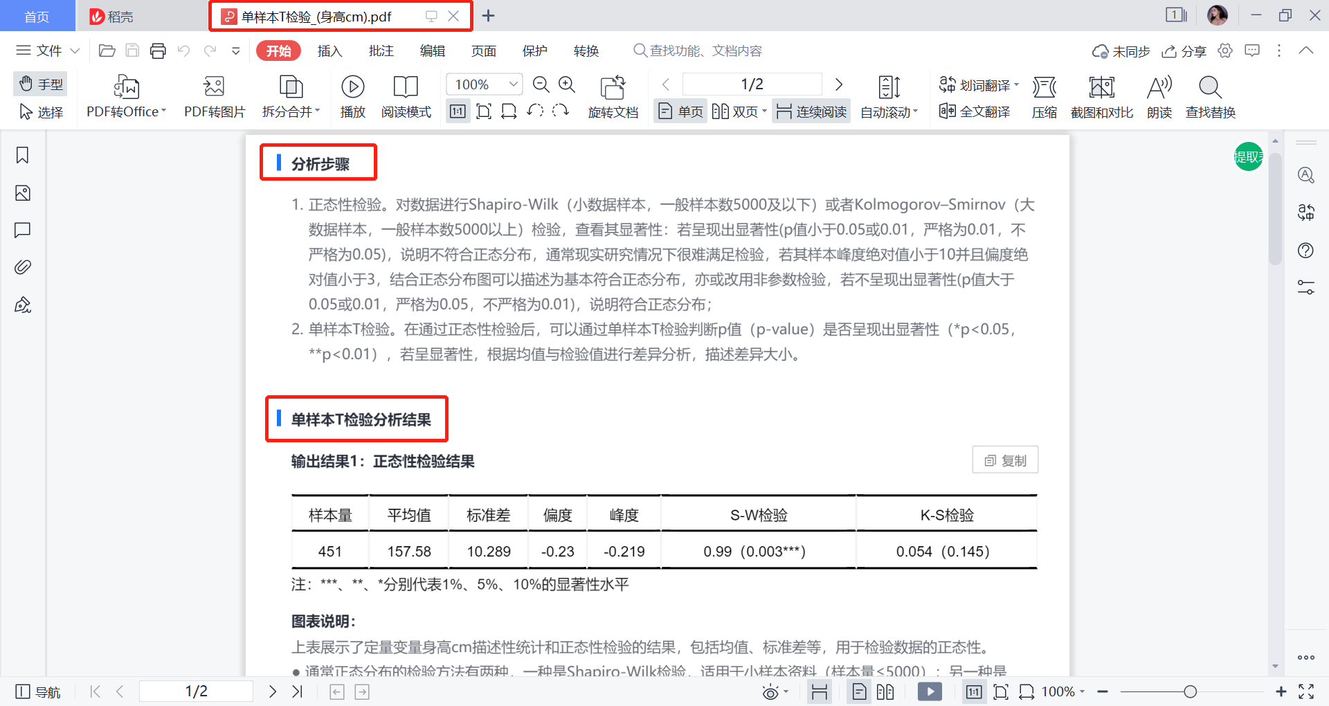 分析报告可以下载PDF版,就像这样,非常简单,一键生成分析与解释,关键术语自动注释,没有统计知识也能读懂分析报告