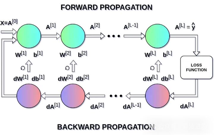 多个例子中的向量化 我们迄今所用的方程式只涉及了一个例子。在神经网络的学习过程中,你通常要处理大量的数据,最高可达数百万条。所以下一步就是在多个例子中实现向量化。假设我们的数据集有 m 个条目,每个有 nx 个特征。首先,我们将每一层的垂直向量 x,a 和 z 放在一起,分别创建矩阵 X,A 和 Z。然后,我们根据新创建的矩阵,重新编写之前列出的方程式。 什么是激活函数?我们为何需要它? 激活函数是神经网络中最重要的部分之一。没有激活函数,我们的神经网络就只是一些线性函数的组合,那样无非就是个线性函数而已。如果是这样,模型的扩展性就很有限了,比逻辑回归也强不到哪去。非线性部分能让模型有更大的灵活性,在学习过程中也能创建复杂的函数。 此外,激活函数对模型的学习速度也有重大影响,而学习速度是选择模型的主要标准之一。下图显示了一些常用的激活函数。当前,隐藏层中最常用的激活函数应该是 ReLU。在处理二元分类问题时,特别是想让模型返回在 0 到 1 之间的值时,我们有时也会使用 S 型函数,特别是在输出层中。 损失函数 学习过程中基本信息源就是损失函数的值。通常来讲,使用损失函数的目的就是展示我们离“理想”情况的差距。在我们这个例子中,我们使用了二元交叉熵,但根据我们处理的具体问题,可以使用不同的函数。我们所用的函数用如下公式表示,在学习过程中它的值的变化情况可视化动图如下。它显示了每次迭代中,损失函数的值在不断下降,准确度的值也不断增加。 神经网络是怎么学习的? 学习过程就是不断改变 W 和 b 参数的值,让损失函数实现最小化。为了能实现这个目标,我们会借助微积分,使用梯度下降法来找到函数最小值。在每次迭代中,我们会计算损失函数偏导数相对于每个神经网络参数的值。对于不太熟悉这种计算类型的人,我这里提示一下,导数能够描述函数的斜率。正因如此,我们能够知道该如何操作变量,从而在图中向下移动。为了能让大家直观感受梯度下降的工作原理,我预备了一点小小的可视化,如下图所示。你可以看到,随着训练批次增加,我们越来越靠近最小值。在我们的神经网络中,也是同样的工作方式——每次迭代计算出的梯度为我们显示了应该向哪个方向移动。主要的不同之处是在我们的神经网络中,我们有更多的参数可以调整。那么怎么计算如此复杂的导数呢? 反向传播 反向传播是一种算法,能让我们计算非常复杂的梯度,比如我们这个例子中需要的梯度。神经网络的参数按照如下公式进行调整。 在上面的方程式中,α 表示学习率——该超参数能让我们控制调整幅度的大小。选择学习率很关键,如果设置的太低,神经网络会学习的非常慢;如果设置的太高,我们就无法达到损失的最小值。使用链式法则以及损失函数对于 W 和 b 的偏导数来计算出 dW 和 db,这二者的大小分别等于 W 和 b。下面第二张图展示了神经网络中的操作顺序。我们可以清楚地看到正向传播和反向传播共同工作,优化损失函数。 结语 希望本文能帮助你理解一些神经网络背后的数学原理,掌握其中的数学基础知识对于你使用神经网络会大有帮助。虽然本文列出了一些重要内容,但它们也只是冰山一角。强烈建议你自己试着用一些简单的框架写一个小型的神经网络,不要借助很高级的框架,这样能加深你对机器学习的理解。