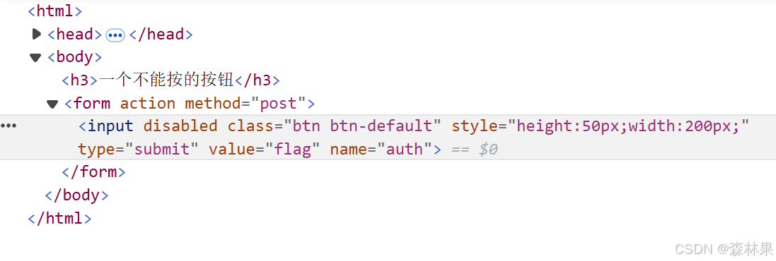 查看源代码,发现input行有disabled,直接双击点击删掉就能按动flag键了
