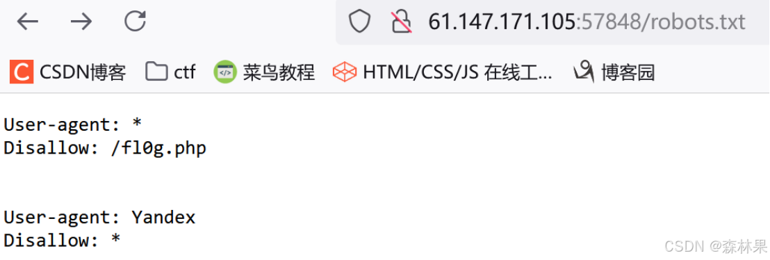 直接访问robots.tet,看到名字类似flag的一个fl0g.php文件