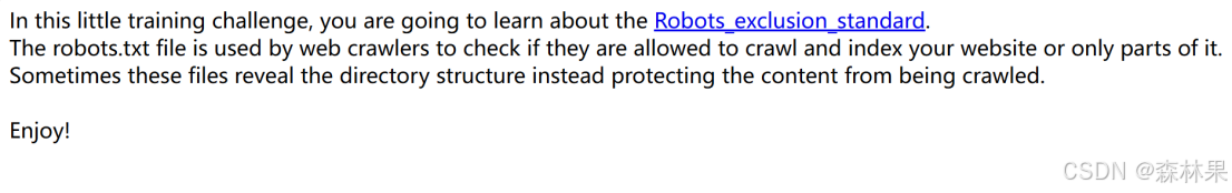robots.txt 是一个协议,访问一个站点时,搜素引擎会首先检查该站点根目录下是否存在 robots.txt ,如果存在,搜索机器人就会按照该文件中的内容来确定访问的范围;如果该文件不存在,则能够访问网站上所有没有被口令保护的页面。