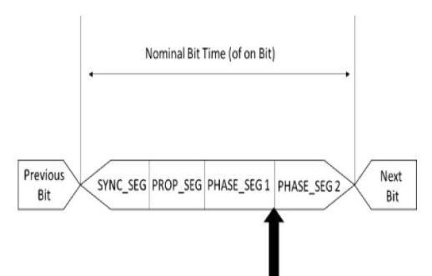 1个时间量子长度,用于多个连接在总线上的单元,通过此段实现时序调整,当总线电压电平发生变化(显性到隐性或隐性到显性)时,预计该段会出现位沿。