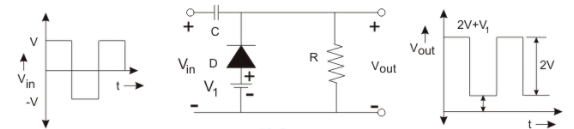 当所加的偏压与二极管导通方向一致,钳位值会提高V1,Vout=2V+V1。