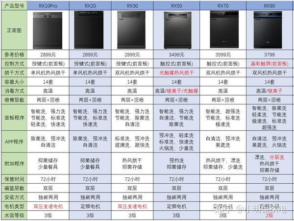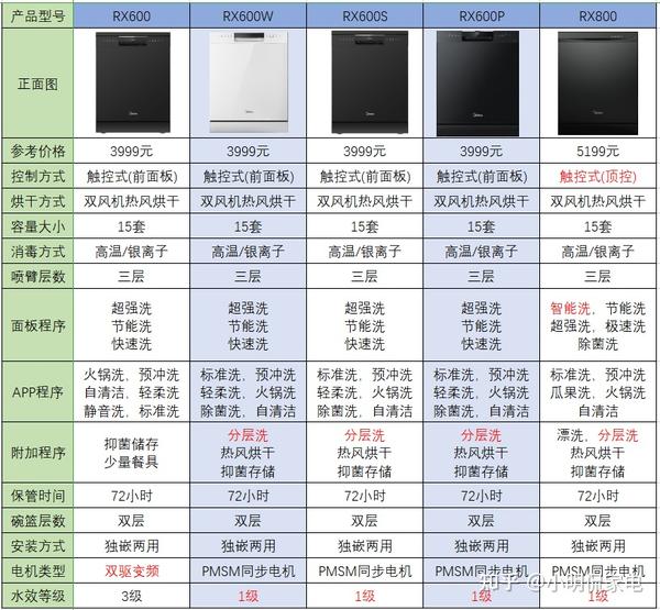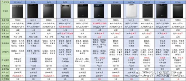 综合来看,RX800的功能丰富,顶控操作更人性化,PMSM电机+三层喷淋臂,双风机热风烘干,72小时抑菌储存,智能洗和分层洗都具备。