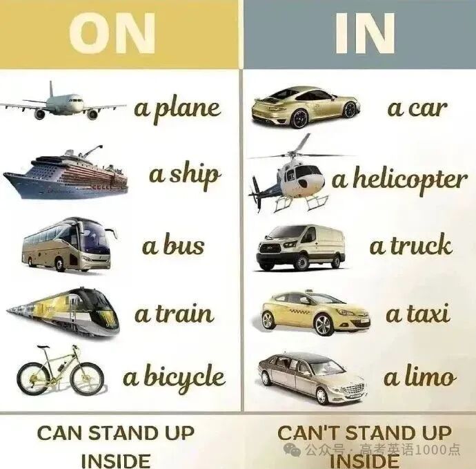 can’t stand up inside(不能在交通工具中站立起来的)都用 in。