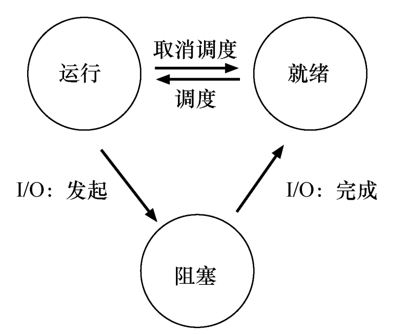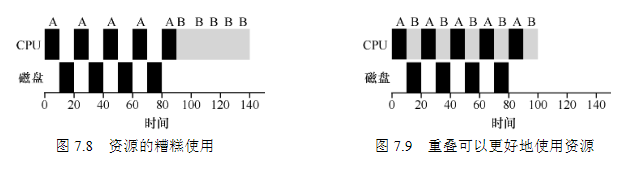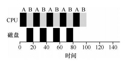 需要考虑的就是,当一个进程在I/O上被阻塞时,应该让其他的进程使用CPU,而不是闲置,所以调度程序要是先运行A,再运行B就是一个差的调度策略: