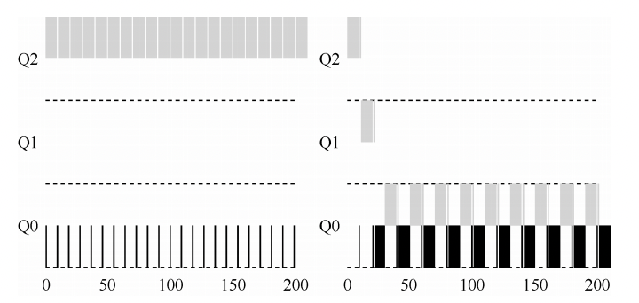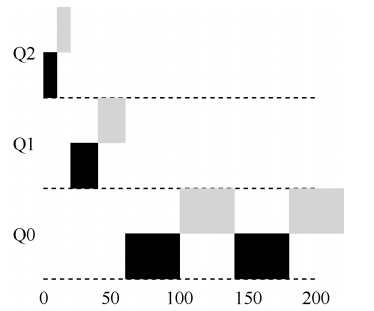 如果对系统中每个队列都执行轮转调度策略,会获得如下调度结果: