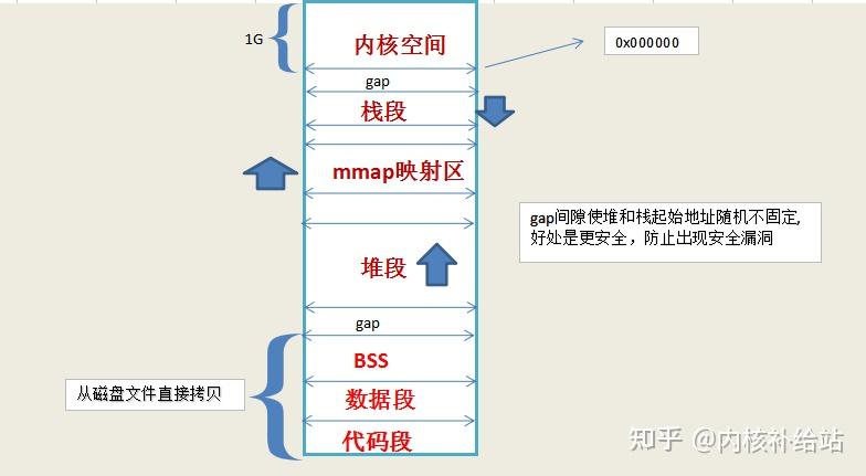 - 代码段,数据段,BSS段,这三个部分直接从磁盘拷贝到内存,起始地址在当前32位平台linux下为0x0地址
