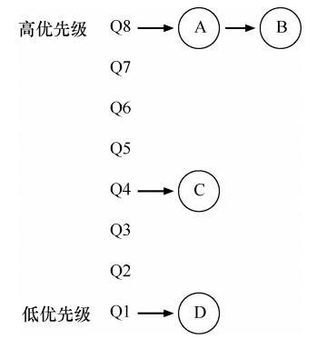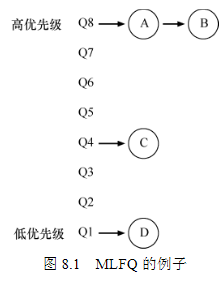 通过这个例子可以体会到这个算法的一个主要目标:如果不知道工作是短工作还是长工作,那么就在开始的时候假设其是短工作,并赋予最高优先级。如果确实是短工作,则很快会执行完毕,否则将被慢慢移入低优先级队列,而这时该工作也被认为是长工作了。